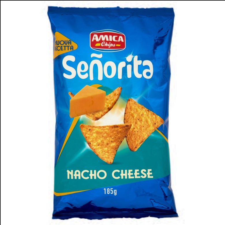 ده منتج من شيبس / تورتيلا بنكهة جبنة الناتشو تحت علامة أميكا شيبس سنوريتا — وهو إصدار بنكهة جبنة قوية ومميزة تختلف عن الطعم الكلاسيكي العادي.